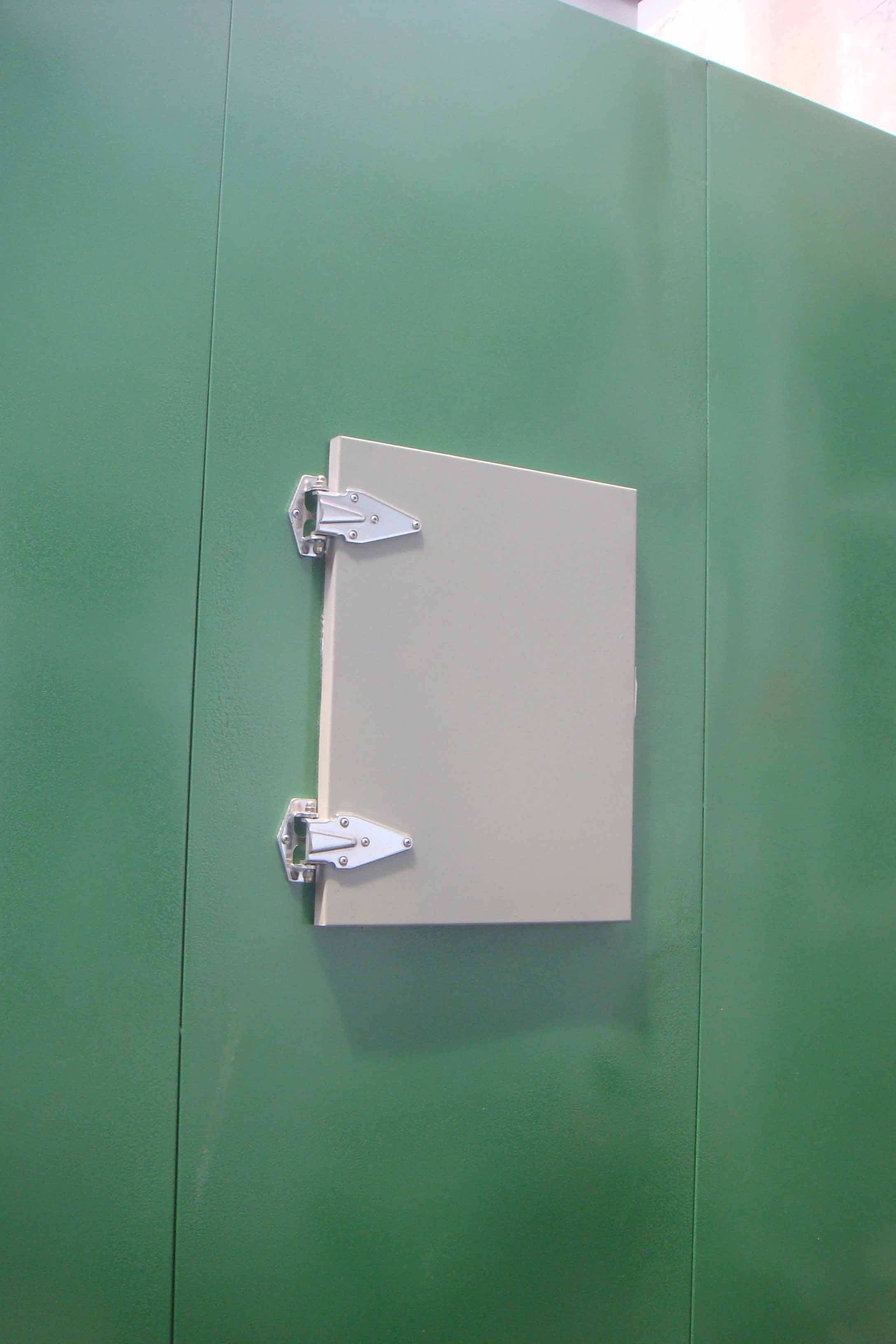 當油漆烘干箱內部的壓力達到一定 值時 , 這扇小門就會自動打開 , 釋放內部的壓力 , 而前門能耐更高的壓力 , 是不會自動打開的 , 而烘箱一般都是 背部向墻 (要留出小門打開的距離) , 所以是非常。